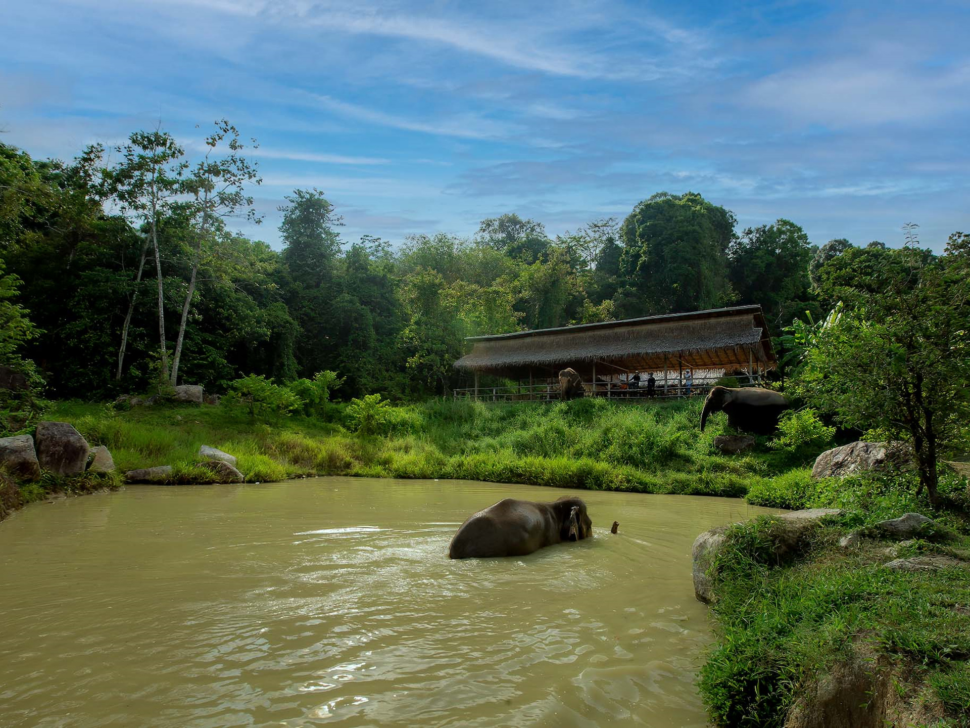 - Have a delicious Thai cuisine lunch / dinner while watching elephants play in the water and enjoying the nature.