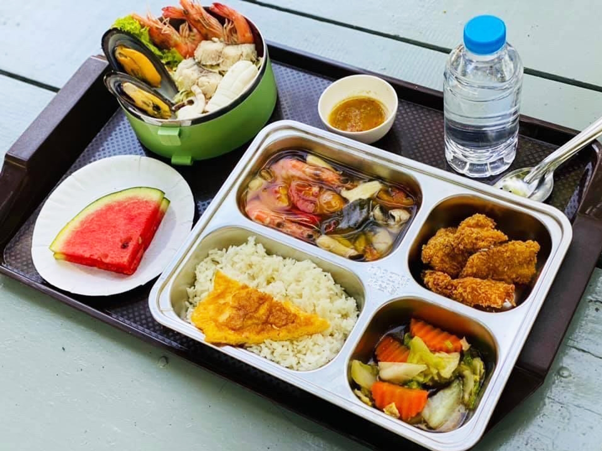 • Seasonal Fruits, Drinking Water and Soft Drink on board